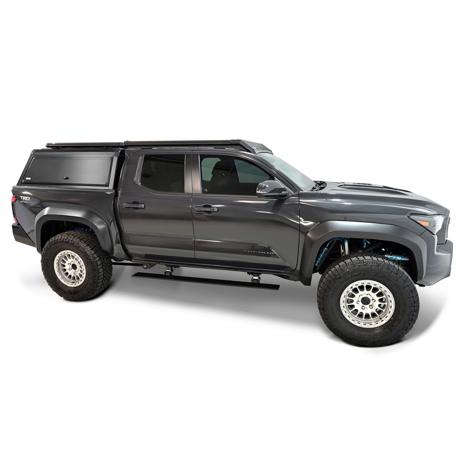 Built to withstand daily driving and demanding environments, these electric running boards deploy automatically when a door is opened and retract when the door closes, helping maintain ground clearance while providing easy access to the cab. The wide aluminum step surface offers dependable traction and stability for passengers entering or exiting the vehicle. A weather-sealed motor and wiring system help protect the mechanism from dirt, moisture, and road debris, ensuring reliable operation over time. Designed specifically for Tacoma Double Cab models across multiple generations, the system installs with vehicle-specific brackets and electronics for a clean, integrated upgrade.