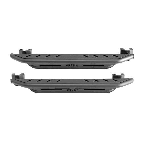 Construction: These side steps are made from 2" diameter .120" thick wall tube with a welded support plate then are finished with a texture black powder coat to prevent rust. Laser cut Westin logo for style.