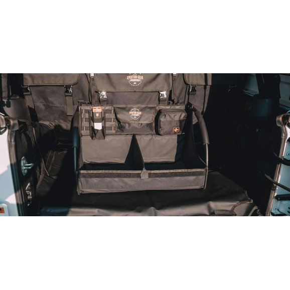 The Gear Box by XG Cargo is a simple way to add needed gear storage to the rear cargo area of your Jeep. This handy storage box can collapse flat for easy storage. The unit is very lightweight with ergonomic padded handles for effortless transport of gear. The included center divider is adjustable, which makes for easy customization for all types of gear. The included flashlight and Storage pouch mount easily onto the Gear Box mount locations.