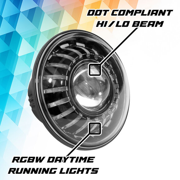 XKGLOW MX-7IN-JP-KIT-JL 7" Headlight XKmax RGBW 19-Pres Kit with Mounting Brackets & App Control 2pc for 19-26 Jeep Wrangler JL & Gladiator JT