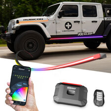 The XKGlow MX-7IN-JP-KIT-JL 2pc XKmax 7in App Control RGBW Wrangler JL Headlight Kit with Mounting Brackets is a cutting-edge upgrade designed to enhance both the functionality and aesthetics of your Jeep Wrangler JL. These headlights feature advanced RGBW technology, allowing you to customize the color and brightness of your lights through a user-friendly app. With millions of color options and various lighting modes, you can create the perfect ambiance for any driving situation, whether on the trail or cruising through the city. The high-intensity LEDs provide superior illumination, improving visibility and safety during nighttime driving. Additionally, the headlights are built to withstand harsh weather conditions, ensuring long-lasting performance and reliability.