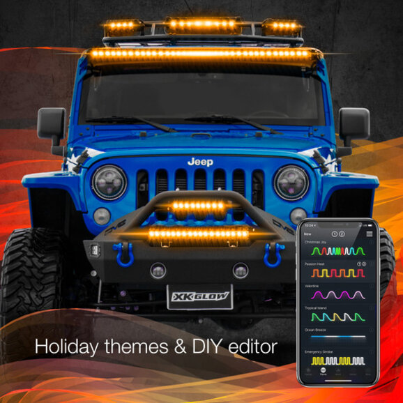 XKGLOW Multi-Color RGBW LED Light Bars with XKchrome Smartphone App for 07-26 Jeep Wrangler JK, JL & Gladiator JT