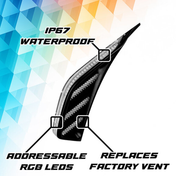 XKGLOW MX-VENT-RGB-KIT XKmax RGB & Amber Fender Vent LED Light with App Control for 18-26 Jeep Wrangler JL & Gladiator JT