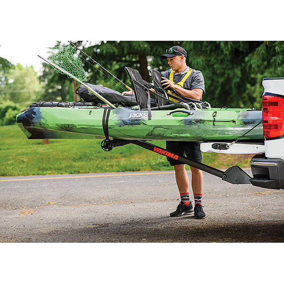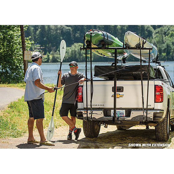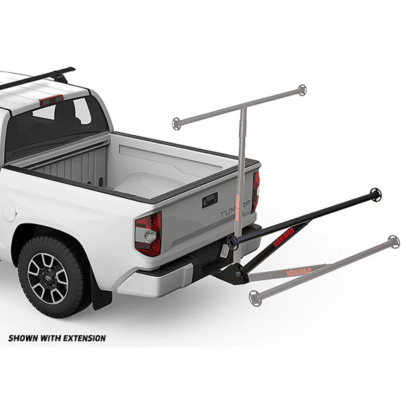 The Yakima LongArm Truck Bed Extender easily extends the length of any truck bed up to 4 feet. Light and strong, the aluminum hitch-mounted rack is the ideal solution for hauling fishing kayaks, boards, lumber, ladders, and more. Adjustable to three distinct load-carrying positions and rated to carry up to 300 pounds in lower positions, the LongArm takes your truck bed to the next level.