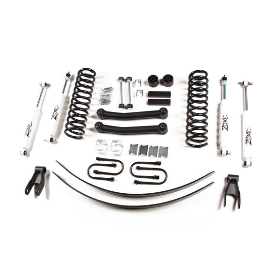 The Zone Offroad 4.5" 84-01 Jeep® Cherokee XJ lift features front coil springs that stand up to abuse, and will always return after compression. The kit includes sway bar end links with urethane bushings to reduce body roll and wear. Zone also puts rear add-a-leafs and front greasable lower control arms in this kit