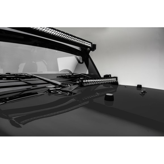 The ZROADZ Hood Hinge LED Mounts with (1) 20" Light Bar for Jeep Wrangler JK is one of the easiest upgrades to add auxiliary lighting to a Jeep. The small low profile package adds functional utility and the mounting brackets are a simple, no-drill, bolt-on installation utilizing the factory hood attachment points to mount to the vehicle. Simply loosen the factory hood bolts, slide the ZROADZ bracket into place, and re-tighten the bolts. This kit is ideal for lighting the trail, or a work area.