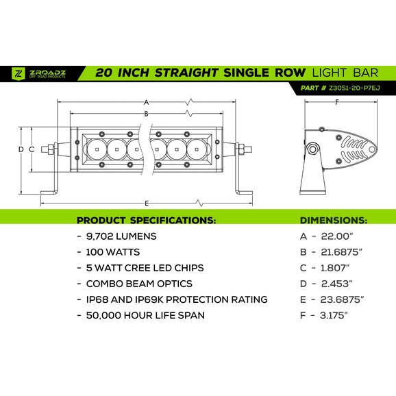 - (1) 20 Inch ZROADZ LED Single Row Slim Light Bar
