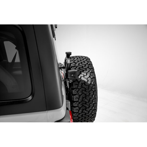 Utilizes the existing Rear Spare Tire Mount: LED Light Mount Brackets Mount to the existing Rear Spare Tire Mount brackets and accepts (2) 3" LED Light Pods. This Kit will work up to a 32" tire.