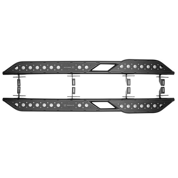 ZROADZ Rock Slider Side Steps are designed to perform under the most extreme conditions while still offering a large step area with perforated top plates for assistance during entry. Designed with high clearance in mind to protect your Jeeps rocker panels, These side steps feature a rear kick-out that helps you slide across larger rocks and obstacles and serves as an oversized step to help you reach the gear mounted to your roof. These steps are made from heavy gauge 1.75-inch mild steel tubing and come standard with a 3-stage epoxy-based black powder-coated finish. Installation is completed in 30 minutes or less.