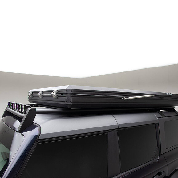 The ZROADZ Roof Rack Kit is a must-have for any Bronco owner looking for both roof storage and additional lighting. This kit includes a ZROADZ Roof Rack and crossbars, custom wiring harness, six 3” LED pod lights, two 3” Amber LED pod lights, and an optional 30” LED light bar. The rack is a modular design for improved functionality and is rated to support 195lbs dynamic, 240lbs off-road, and an impressive 570lbs static. Made from heavy-duty steel with a powder-coated finish, this rack boasts long-lasting durability you can count on. The adjustable crossbars allow for most soft- or hard-shell tents to be used. Each pod light puts out over 1700 lumens for superior lighting that’s sure to illuminate even the darkest of trails. Installation is a bolt-on process with no drilling or cutting required.