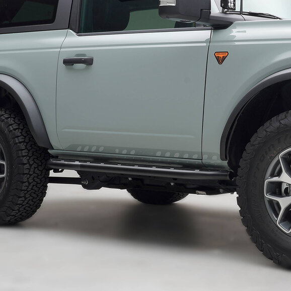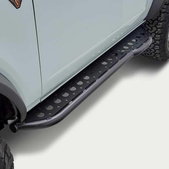 ZROADZ TRAILX.R1 Series Rock Slider Side Steps for Ford Bronco 2-Door are built to perform under the most rigorous conditions while still providing a large step area. Designed with high clearance in mind to protect your vehicle’s rocker panels, ZROADZ Rock Slider Side Steps feature a rear kick-out that helps you slide across larger obstacles and doubles as an oversized step to help you reach your gear mounted to your roof. The step platforms are generous in size and provide perforated top plates for aid during entry. ZROADZ Rock Slider Side Steps are made from heavy gauge 2.0-inch mild steel tubing and come standard with a 3-stage epoxy-based black powder-coated finish that will help keep them looking great even after exposure to the elements.
