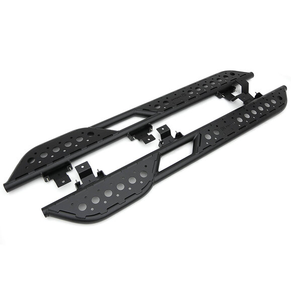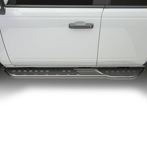 ZROADZ TRAILX.R1 Series Rock Slider Side Steps for Ford Bronco 4-Door are built to perform under the most rigorous conditions while still providing a large step area. Designed with high clearance in mind to protect your vehicle’s rocker panels, ZROADZ Rock Slider Side Steps feature a rear kick-out that helps you slide across larger obstacles and doubles as an oversized step to help you reach your gear mounted to your roof. The step platforms are generous in size and provide perforated top plates for aid during entry. ZROADZ Rock Slider Side Steps are made from heavy gauge 2.0-inch mild steel tubing and come standard with a 3-stage epoxy-based black powder-coated finish that will help keep them looking great even after exposure to the elements.
