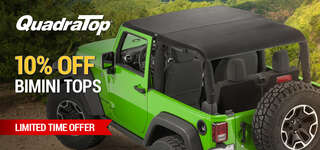 Bimini Tops are a stylish way to cover the area above the driver and passenger as well as coverage for the rear passengers. All QuadraTop Bimini Tops are constructed of durable 23 oz. fabric and can be used with optional horizontal roll bar mount grab handles! Simple no drill installation, these summer soft tops are a must for your Jeep®. Colors match all accessories and works with Clearview Windstopper and Tonno covers.