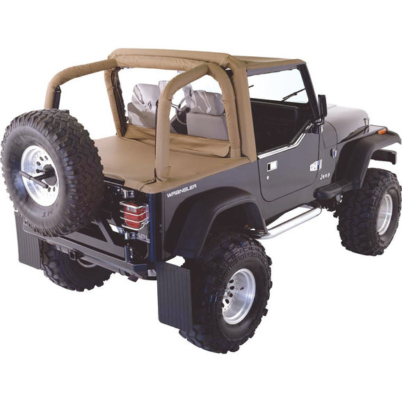 Rampage Products Cab Top encloses Jeep® Wrangler driver & passenger compartment with durable factory grade fabric. Features a soft top enclosure attached to a wind breaker rear section that seals the cab tight keeping wind and weather out. The back windbreaker easily zips in or out & features a handy rear access door that zips open or closed for rear access. Includes fabric cab enclosure and rear panel windbreaker with zip-out window. Factory soft top hardware and windshield channel required for installation of all Cab Tops