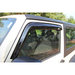 New from Rugged Ridge, these side window air deflectors aerodynamically designed to reduce wind noise while channeling airflow to keep your vehicles interior free of smoke, stale air and window fogging. The special design channels rain around your window while still allowing air to flow through your windows. These no-drill deflectors allow you to drive with windows cracked open but not let rain in! Constructed of durable scratch resistant smoked acrylic, these wind deflectors easily install with special automotive grade tape. Packed in pairs or in sets of four, these great side window deflectors provide protection for both driver and front/rear passengers. Limited 3 year warranty against manufacturer's defects.