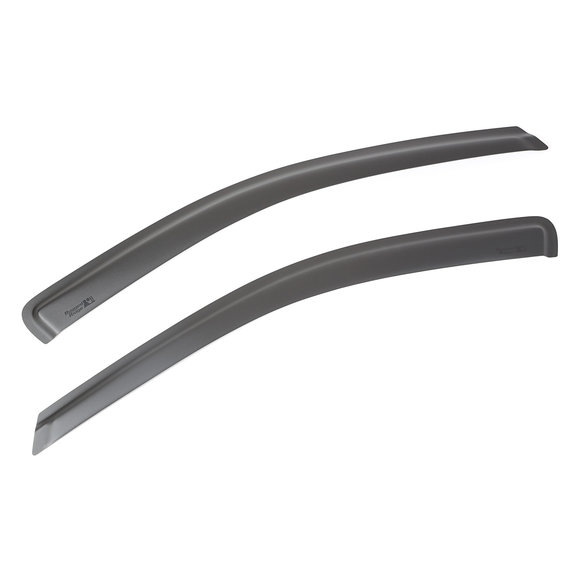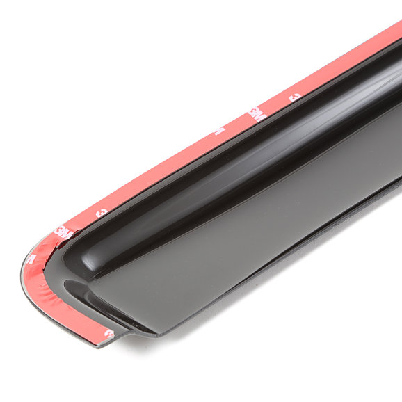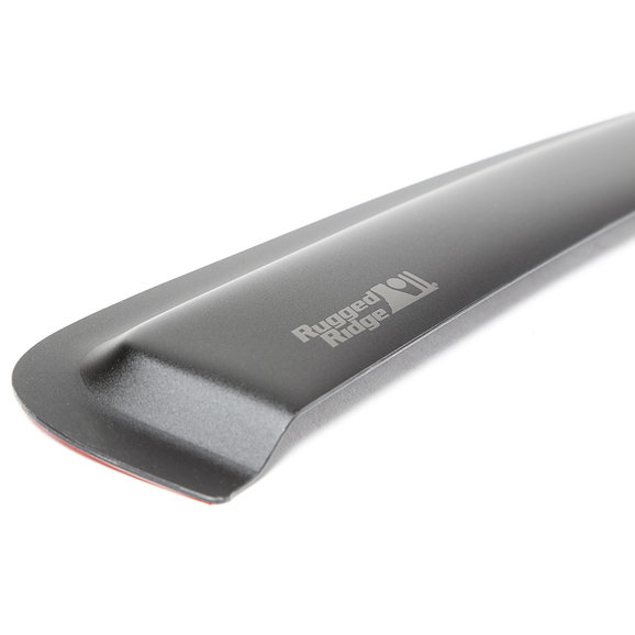 Let the fresh air in and keep the rain out with this pair of window visors from Rugged Ridge. These visors feature a durable scratch resistant 2mm thick acrylic and a low profile design for a precise fit. These matte black visors offer a stylish look for the exterior of your vehicle while helping to channel airflow over your vehicle to reduce wind noise when the windows are open, for a quiet and comfortable ride. Attaches using double-sided automotive grade adhesive tape.