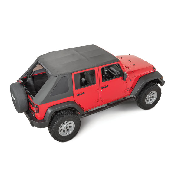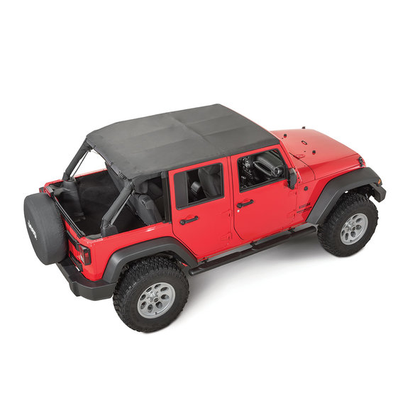Our innovative soft top design, specifically for the JK 4 door, includes everything needed to transform any Wrangler with a soft top or hardtop into a sleek fast back convertible regardless of the existing top situation. Unlike conventional soft top designs, the Adventure® Top is a bowless design that's largely supported by its unique door surrounds and the vehicles sport bars to create a sleek low profile. The Adventure Top comes with every bit of hardware including door surrounds, tailgate bar, windshield header, fabric top and windows. Installation is a breeze with our highly detailed installation instructions featuring color photos and detailed line drawings that walk you through the process with confidence. The Adventure Top will provide lasting durability and unique restyling with the ride comfort you want and protection from the elements that you need.