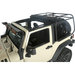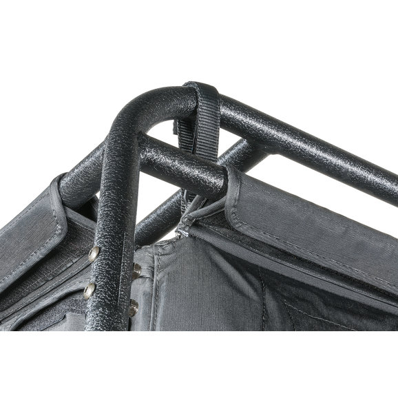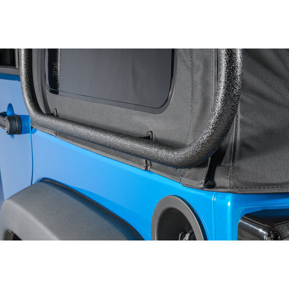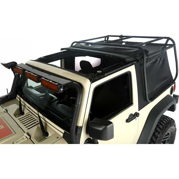 The Exo-Top is an innovative new design that, for the first time ever, combines the joy of top-down driving with the utility of a roof rack, taking convenience, function, and style to new levels. It allows Jeep owners the ability to conveniently lower, raise or remove the soft top with ease without having to unload gear from the roof-rack cargo. By combining the soft top and roof rack, owners can experience a Jeep to its full potential for camping, off-roading, or any lifestyle hobby they may have. This new top also features an innovative Sun Slider retractable function which allows the front of the top to slide back with the release of just two latches, creating an open-top experience for owners without the hassle of getting out of the driver seat. Integrated into the 300-lb. capacity roof rack is an advanced externally suspended soft-top design that fastens using a series of hook and loop straps along the perimeter bars of the roof rack. The pulling force applied by the hook and loop straps help to tighten and shape the soft top. Offered for both the two- and four-door configurations, the Exo-Top features a patent-pending design that is a direct bolt-on application with no drilling required for installation.