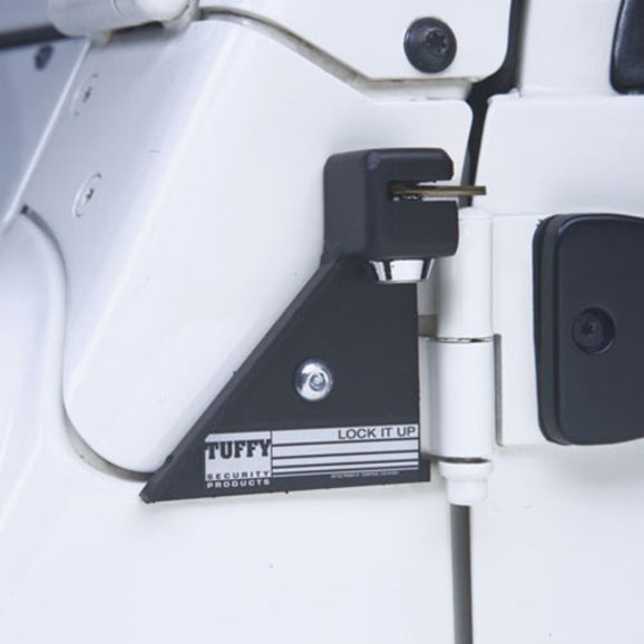 These Jeep TJ/LJ external door lockers provide theft protection for otherwise vulnerable Jeep hard doors. The door lockers function to prevent doors from being lifted off. The locks allow the owner to unlock and remove doors.