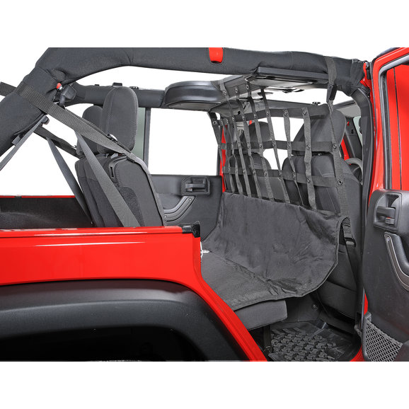 This is a great product for your dirty dog This is a combination front pet divider with a rear seat hammock to protect the rear seat. Fit the Unlimited model only. Can be used with the rear seats up or in the folded down position. This item is available in black only.