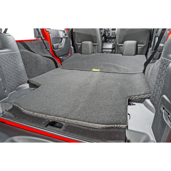 The 2-Piece rear Crash Pad by Dirtydog is designed for being a comfortable place to lay while on an overnight getaway, or for pets who are a welcome addition on any trail ride or daily drive. The pad also provides extra protection for the rear cargo area, which is essential for storing important gear with the rear seat removed. Designed to match all Jeep interiors, the pad is reversible with a plush carpet on one side and easy to clean durable vinyl on the other side. The interior of the pad is made up of one inch memory foam which will provide a comfortable spot for pets to hang out. Available in gray color.