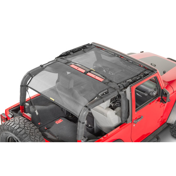 Looking for a quick easy solution to keep the sun out while letting the breeze in? Dirtydog 4x4 has the answer for you. Dirtydog 4X4 Sun Screen Tops are an easy on and off durable heavy weight screen that does not need to be removed to install your hard or soft top. Designed to eliminate glare and keep 70% of the harmful UV rays out while still allowing open air riding. The Dirtydog 4X4 Sun Screen Top installs easily without the need for a header bracket. No special tools required for installation.