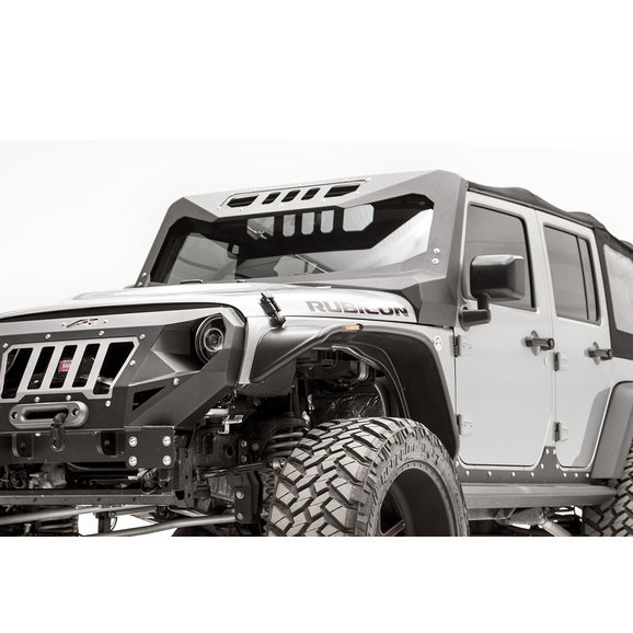 The ViCowl offers unique styling, added front windshield protection and the option for additional lighting. Make your Jeep JK stand out from the rest w/ the Fab Fours' ViCowl. This aggressive yet sophisticated piece is sure to change the way we look at Jeeps going forward. The 11ga steel peice combines a visor and cowl with simple and quick installation. Available in paint-able bare steel or black powder coat finish. Light insert sold separately.