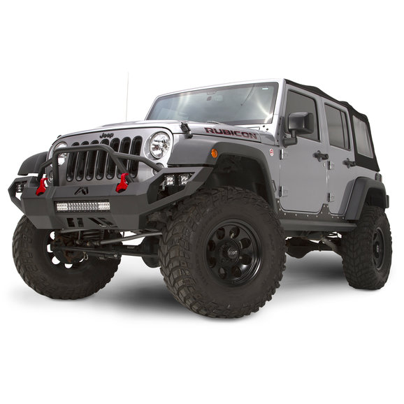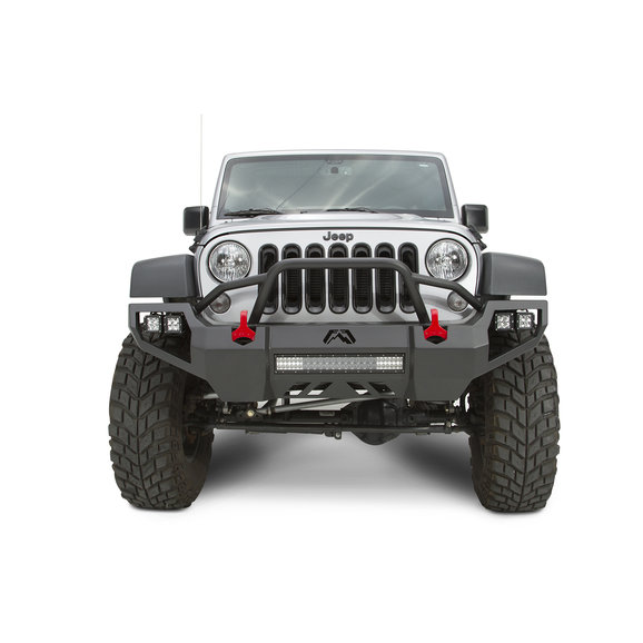 Fab Fours Vengeance series front bumpers offer a sleek and stylish finish for the front of any Jeep JK Wrangler. These premium steel bumpers are engineered to be lightweight which can aid in overall handling performance. The high and tight fit of the bumper includes lower cutouts for added airflow, which also gives that aggressive look. Integrated center housing allows the mounting of a 20" light bar, and side light mounts allow 2 single cube lights to be installed to provide maximum light coverage.