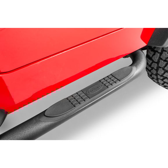 The QR3 heavy duty side steps are the traditional design that incorporates tough non-slip nylon pads making it easier and safer to get in and out of your vehicle. Our side steps are custom engineered to fit your Jeep® with an easy no drill installation using frame mounted brackets. Our side bars feature mandrel bent 3" diameter seamless tubing that's .07" thick. The durable powder coat finishes feature e-coatings for superior adhesion and corrosion resistance and are available in gloss black or textured black. Powder coat finishes carry a three-year limited warranty while our beautiful show polished stainless steel versions carry a limited lifetime warranty. Sold as pair