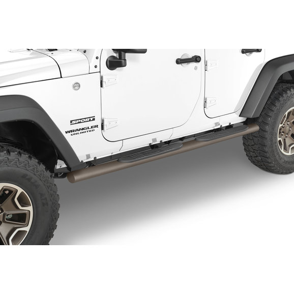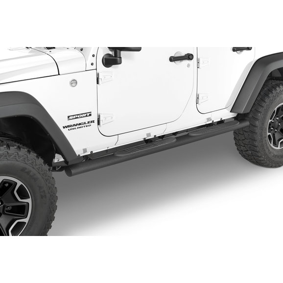 The QR4 heavy duty side steps are the traditional design that incorporates tough non-slip nylon pads making it easier and safer to get in and out of your vehicle. Our side steps are custom engineered to fit your Jeep® with an easy no drill installation using frame mounted brackets. Our side bars feature mandrel bent 4" Oval diameter seamless tubing. The durable powder coat finishes feature e-coatings for superior adhesion and corrosion resistance and are available in gloss black or textured black. Powder coat finishes carry a three-year limited warranty while our beautiful show polished stainless steel versions carry a limited lifetime warranty.