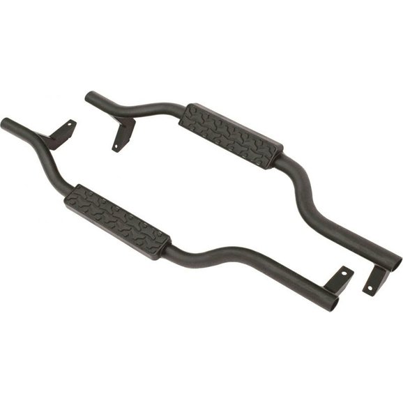 New from Rampage Products are these stylish side protection Slimline Step with stirrup low profile anti-skid step. These 2 diameter mandrel bent Side Bars include all nessacary hardware and brackets for a quick and easy no drill installation. Available for both 2 door and 4 door Wranglers in textured Black finish.