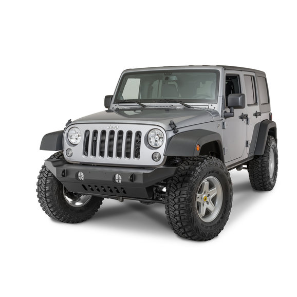 This heavy-duty bumper is fabricated using USA Grade 3/16 Steel Plate, laser cut, CNC formed, robotically welded, and hand finished by craftsmen. The D-Ring mounts are 5/8 Thick Plate and welded solid front and back so they can be used as recovery points. All JK Front Bumpers receive a thorough zinc phosphate rinse and cleaning, then are E-Coated and Powder Coated with a lightly textured black finish. Our unique textured finish is easy to clean and matches almost perfectly to the black factory fender flares. This bumper is completely Bolt on, No Drilling Required.
