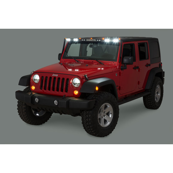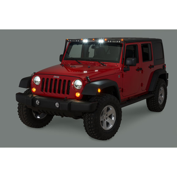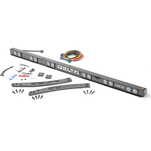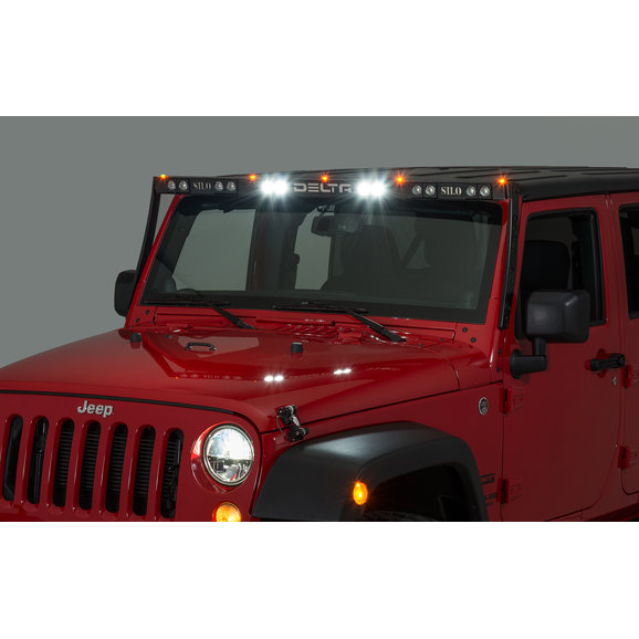 The ultimate LED Silo-12 Sky-Bar custom designed and made in USA for Jeep JK and TJ. The laser cut steel cross bar and billet aluminum arms are secured to body with stainless steel bolts which provide 30° vertical aiming adjustment. NO DRILLING is necessary with installation of this very unique and innovative bar which bolts on directly to existing factory bolt holes. The bar is powered by 150 Watt long range LEDs providing near daylight luminosity while drawing only 10 Amps and 20,000 lumens. The unit comes with LED Cab lights and 3-phase double wire harness with relays and illuminated switches. Made in USA