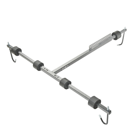 The Jeep Hoist-A-Top is a must have for Wrangler owners. The new Hoist-A-Top makes removing and storing a hardtop an easy, one -person job. The Hoist-A-Top supports any top with a well-balanced steel frame using the new Balance Blade™. Rubber coated hooks and foam-covered hardware will protect your top's finish. The Lange Hoist-A-Top uses an incredibly strong steel powder coated frame that quickly attaches to your vehicle top without any drilling. With the turn of a handle a cranking cable pulling mechanism mounted to your garage wall with the cable fed through an eye hook in your ceiling will lift your top to the ceiling in your garage or carport for convenient, out-of-the-way storage.