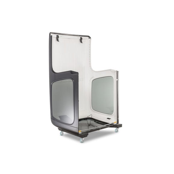 Thick solid wood and steel construction for sturdy quality that really lasts. Indoor/outdoor carpeting is rugged yet soft to protect the finish on your Jeep®. Developed specifically for all CJ and Wrangler hardtops so it will fit perfectly and securely! Superb design stores top in a vertical position saving space around the garage or shop. Wheels glide the top to any area of the garage or shop with one hand! Purchase our Deluxe Hardtop Rear Liftgate Retainer Bar to avoid damage to the gate and glass. This clever device keeps the rear liftgate window from opening while positioning a top onto the cart saving time and aggravation.