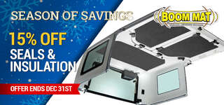 Boom Mat™ acoustical panels filter distorted audio waves of both low and high decibel frequencies or from bass vibrations, road rattle and engine noise that disrupt the good sound waves that we would rather hear. Boom Mat reduces your vehicle's interior noise for quieter conversations while enhancing your audio system's acoustic performance. Boom Mat's sound deadening head liner kits feature 1" thick pre-cut peel and stick panels that will dress up your hard top's interior while the inherent insulating properties protect occupants from blazing hot and ice cold temperatures. Boom Mat has been tested to reduce noise levels down to 3 or 4 decibels to improve overall interior acoustics so occupants can enjoy the audio system and conversations without excessive and irritating road noise.