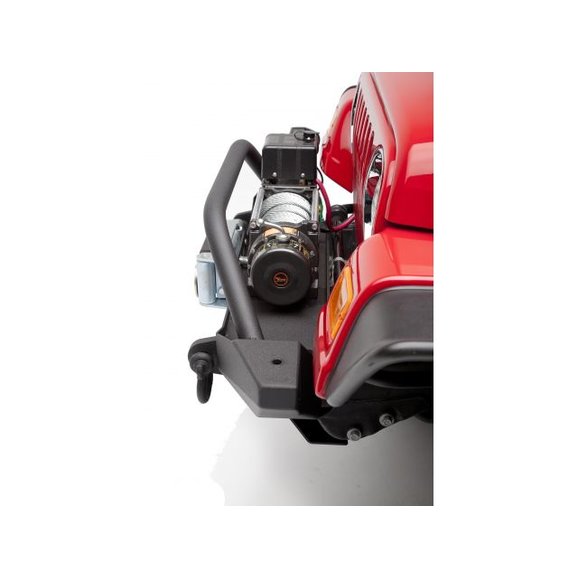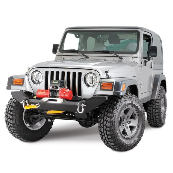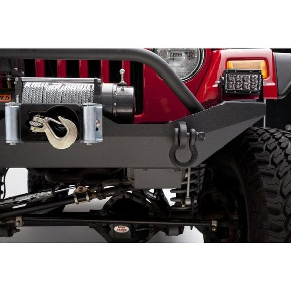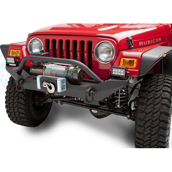 This new Body Armor front bumper fits '87-'06 Wrangler YJ and TJ models. It is formed from 3/16" rolled steel plate with an integrated 1/4" thick winch plate. The bumper ends are reinforced along with fully integrated shackle mounts. It also features a bolt steering box skid plate and grille hoop which has built in light tabs. Two step textured black powder coat finish makes for a long lasting durable bumper.