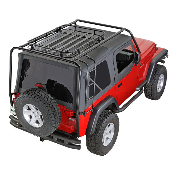 This new Ladder is a great way to help load all your gear in the TJ Adventure Rack. Easily bolts on to Adventure Rack with no drilling required. Made form steel tubing to match the Adventure Rack. It will only work on the Passenger Side Rear.