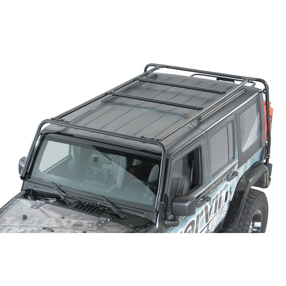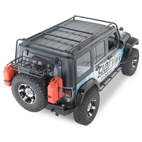 The new Garvin Industries Adventure rack for the JK is the most versatile rack we have ever offered. The rack is perfect for someone looking to mount a canoe or kayak, or even a piece of plywood from your local hardware store. With the optional accessories, you can turn it into a full-on off-road rig. The Adventure rack mounts to the front windshield and frame holes in the rear of the Jeep, with no drilling required. The rack can be tilted back to lower or raise the soft-top. The Dynamic weight capacity for the Adventure Rack is 300 lbs & static weight is capacity is 600 lbs. This rack is constructed from 1" steel tubing.