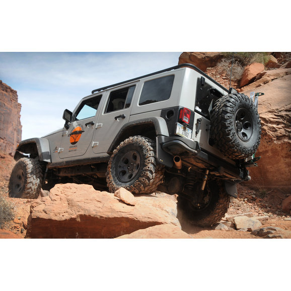 These new molded guards are designed to meet most international and US highway regulations for tire coverage and will help keep mud and debris under control. Constructed from flexible and durable polyethylene, AEV has molded these Splash Guards to perfectly match the contour of the Rear Bumper's rock tubes and water tanks. Installation takes less than 10 minutes and requires no cutting, drilling or fiddling with exotic fasteners. Simply hold the Splash Guards in place and secure them with the supplied stainless bolts to the threaded inserts already molded into the water tanks. And it's just as easy to remove the Splash Guards when they're not needed.