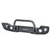 Strong, attractive and versatile, the New Stamped Steel Front & Rear Bumpers from Rugged Ridge feature a tough powder coated texture with a sturdy 11 gauge stamped steel construction. Stamped in knuckles strengthen vulnerable bottome edge while providing a rugged, tough look. The stamping process used allows for the most advanced styling on the market, creating a bumper lighter than most aftermarket steel bumpers and it's designed to work with most popular winch models. Injection molded crush can covers add modern styling while keeping with factory front bumper specs! Front bumper is designed to re-use the factory tow hooks.