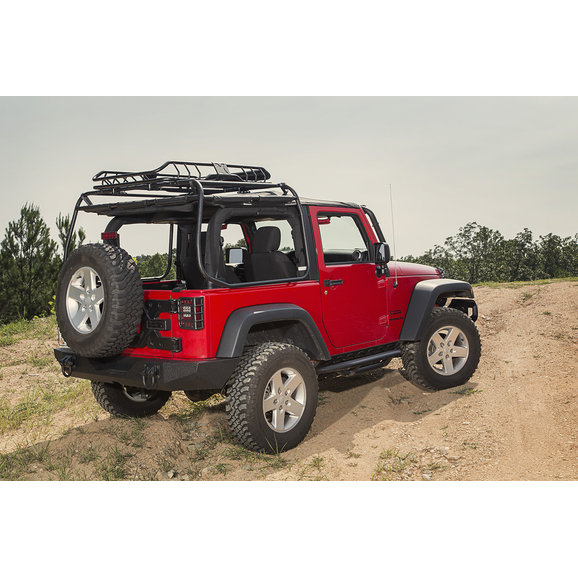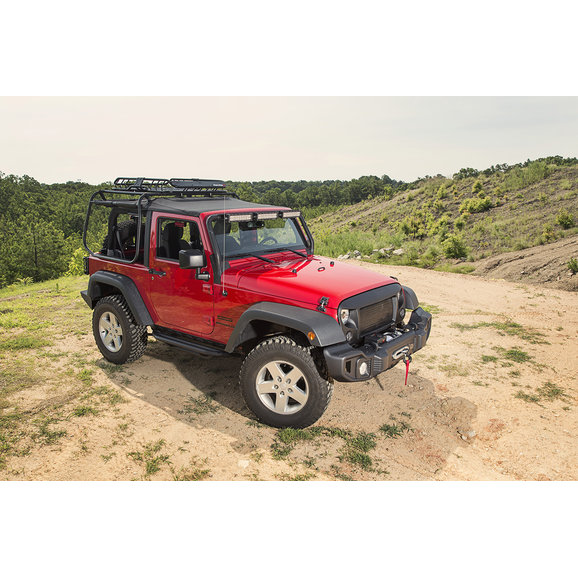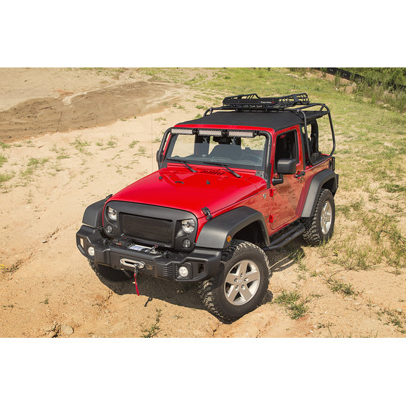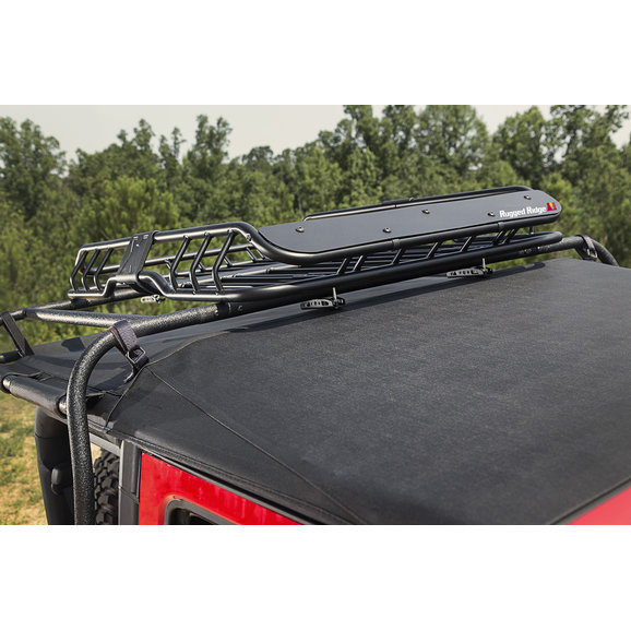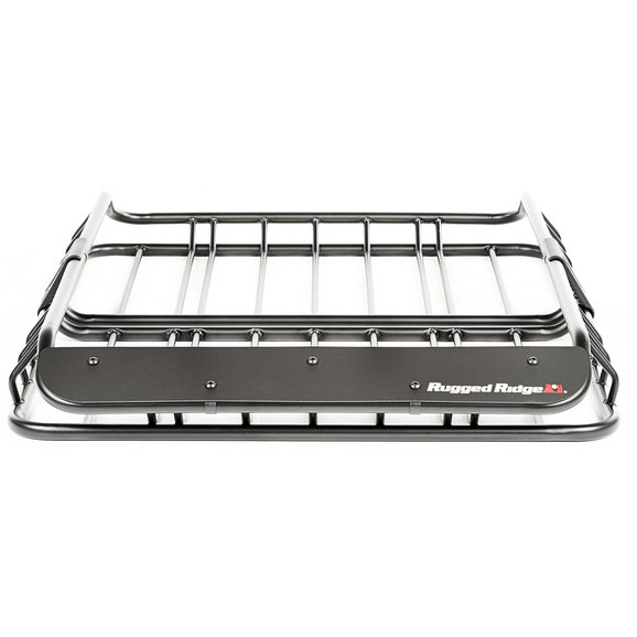 Looking to add further utility to your roof rack area? This black sturdy roof rack basket from Rugged Ridge adds extra storage space outside of your vehicle, freeing up valuable room inside. Combine it with the Rugged Ridge Sherpa Roof Rack or Exo-Top for a more versatile and functional experience for kayaks, bike racks, and anything else you might need for your next outdoor adventure. Engineered to be the perfect accessory for carrying luggage and any of your other must-have outdoor items, the strong two piece steel tray comes in a stunning black powder coated finish for corrosion resistance. The front of the tray incorporates a sleek and aerodynamic wind deflector which not only adds great styling, but makes for a much quieter ride. Universal fit. Features a 132 pound load rating.