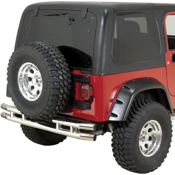 The QR3 heavy duty rear tubular bumpers are the perfect companion to any QR3 front bumper and side bar combination. Rear bumpers feature a cutout to accommodate spare tires up to 33" in diameter. Our rear bumpers feature mandrel bent 3" diameter tubing that's .07" thick. The durable powder coat finishes feature e-coatings for superior adhesion and corrosion resistance and are available in gloss black or textured black. Powder coat finishes carry a three-year limited warranty while our beautiful show polished stainless steel versions carry a limited lifetime warranty.