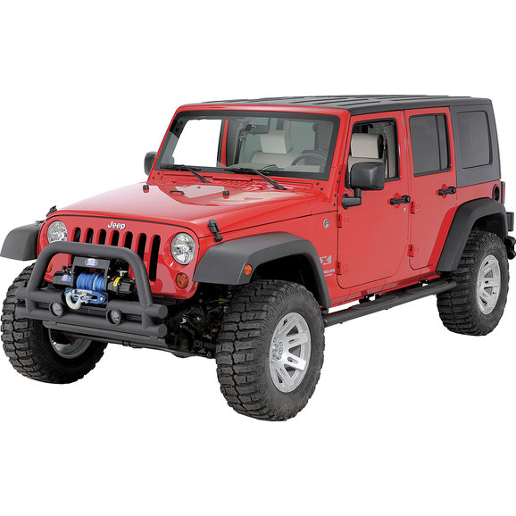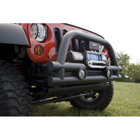 Rugged Ridge have taken their industry leading Front Tube Bumper and re-designed the ends to make the ultimate off road winch bumper. This unique design has a built in winch mount and special cut-outs for the JK Wrangler factory fog lamps. Like their regular tube bumper, Rugged Ridge has cut into the front tubing allowing the bumper to hug the front end of the Jeep. Each bumper includes durable welded end caps and polished smooth welds for the ultimate in durability.
