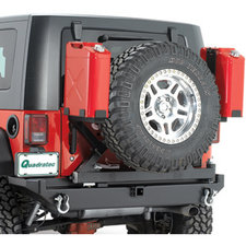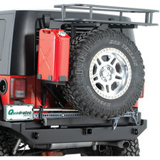 The Rock Hard Jeep JK Wrangler Rear Bumper/Tire-Carrier is the only JK rear bumper on the market today that is made out of 1/4" thick plate steel. Designed with tapered ends for increased departure angles, this bumper will hold up to a 38" tire, comes standard with an integrated Class 2 hitch receiver, CB antenna mount, a horizontal Hi-Lift Jack mount with padlock provision and two 5/8" x 2-1/2" CNC D-Ring shackle mount with tabs that are welded on front, go through bumper and then are welded on the backside as well. All necessary hardware necessary for the installation is provided and an optional Jerry Can Mounts and a Rock Rack are all available for purchase separately.