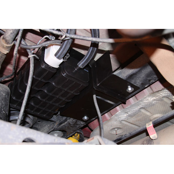 JK owners know the concern of cracking the fuel canister. Each JK owner needs this relocation bracket. This Rockhard4x4 relocation bracket mounts the fuel canister above the rear axle onto the bottom of the body of the Jeep. This makes the canister unreachable by rocks and debris. This JK Fuel Canister relocation bracket is a must have for the serious offroader. Works on two and four door models. Kit includes installation instructions, all hardware necessary and replacement hoses.