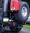 Rock Hard Tank Mounts bolt on and work with NATO or USA cans. Left and right side sold separately. Requires Rock Hard Rear Bumper/Tire-Carrier for installation.