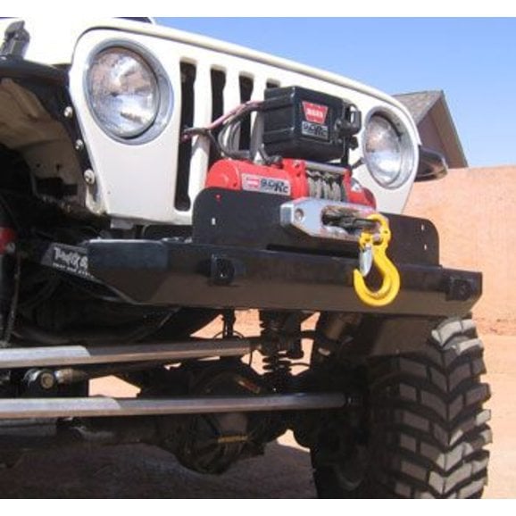 Warrior's Stubby Rock Crawler Bumper is designed to fit all CJ-7's, YJ's, and TJ's from 1976 to 2006. These bumpers are designed for the off-road enthusiast who wants rugged construction, and rounded face to provide a cleaner entry and exit, and a very narrow design for maximum clearance. Constructed from 3/16" HRPO steel and powder coated gloss black Front Rock Crawler stubby Bumper measures 45" wide x 4 1/2 High and 4 3/4" in depth.