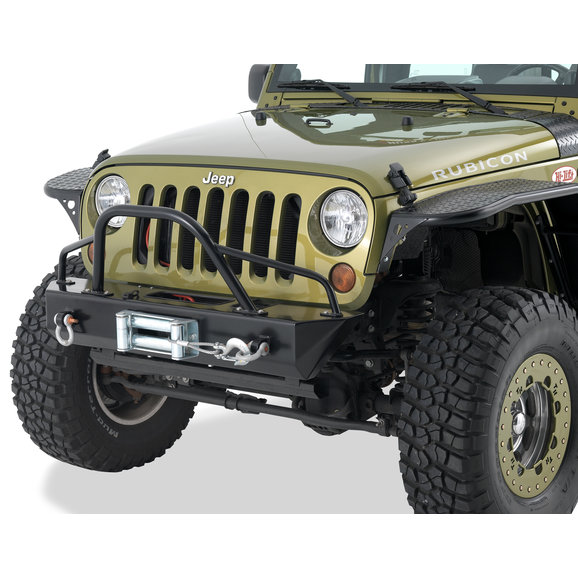 Pre-Runner style universal brushguard is made from 1.5" main hoops with 1" struts. Designed for use with the Stubby Rock Crawler Bumper for Wrangler JK.