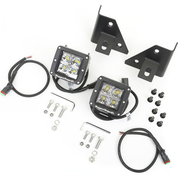 Looking for an alternate way to mount your lights during your off-roading adventures? This Rugged Ridge windshield bracket LED light kit allows you to quickly and easily mount your LED lights to your factory windshield hinges, creating two great spots for off-road lighting. This easy to install kit includes two black powder coated windshield mounting brackets and two 3-inch square LED lights for optimal illumination on the trails. No drilling required.